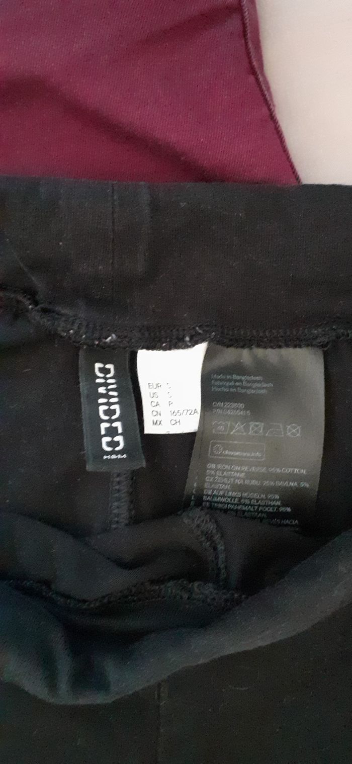 Vends un legging fin couleur noir avec écritures blanches sur les côtés, marque Divided H&M, taille S (EUR). Longueur entrejambe : 65 cm.