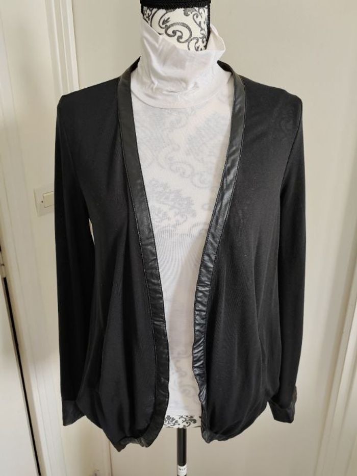 Porté quelques fois Taille S/M Liseré simili cuir devant et au manche 2 poches J'ai d autres gilets dans mon dressing n hésitez pas à jeter un coup d'œil Merci !!