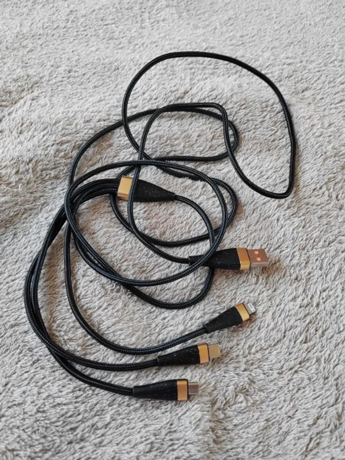 Cable charge 1m25 Usb C ,IPhone, micro J'ai d autres câbles dans mon dressing n’hésitez pas à jeter un coup d'œil Merci !!
