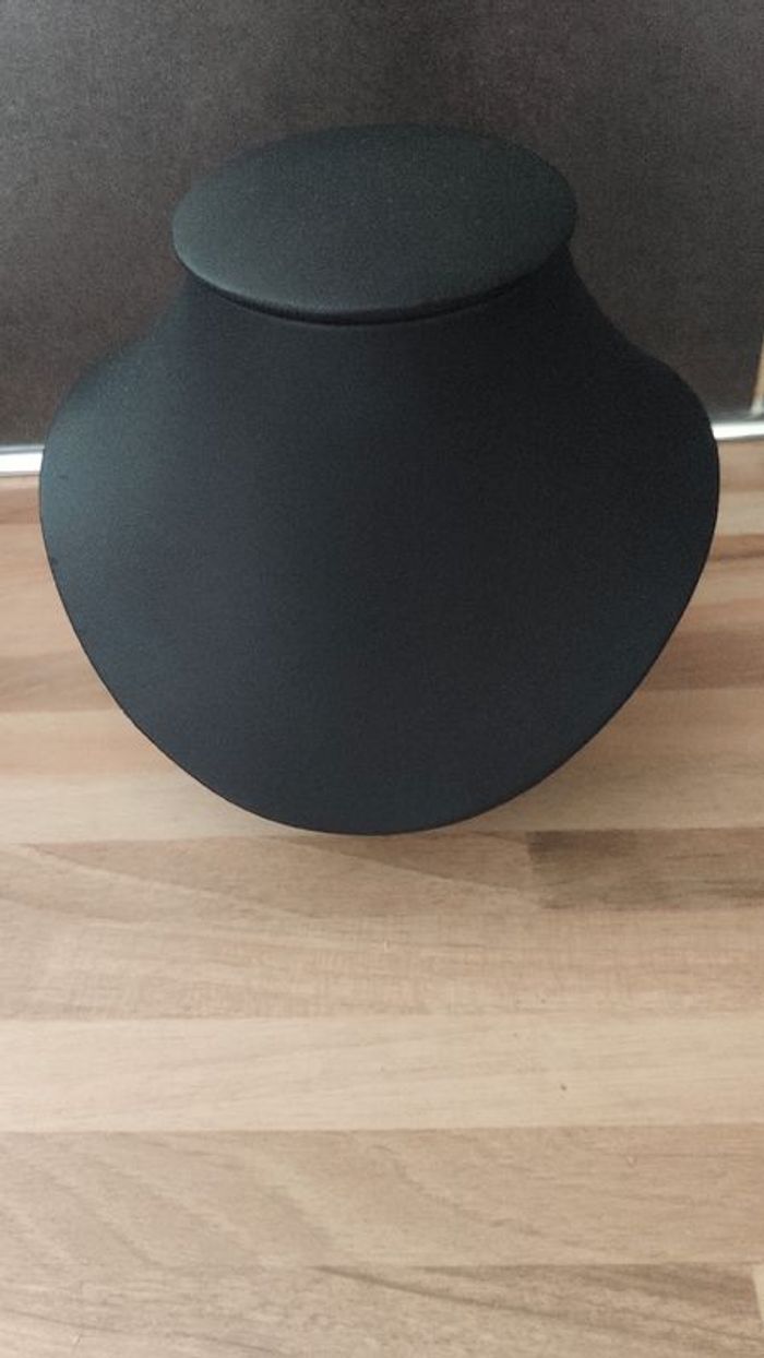 Presentoir pour ras de cou ou moyenne longueur en simili cuir et daim. Noir dessous Modèle moyen Hauteur 17 cm