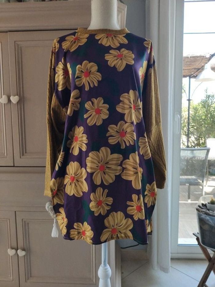 Robe grosse fleurs et manches doré taille 42 Wiya