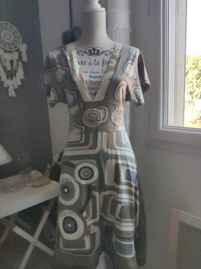 Robe imprimé beige/grise desigual taille 34