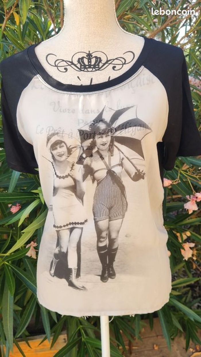 Tunique bi matière beige noire Marcel et cendrillon taille 38 neuve