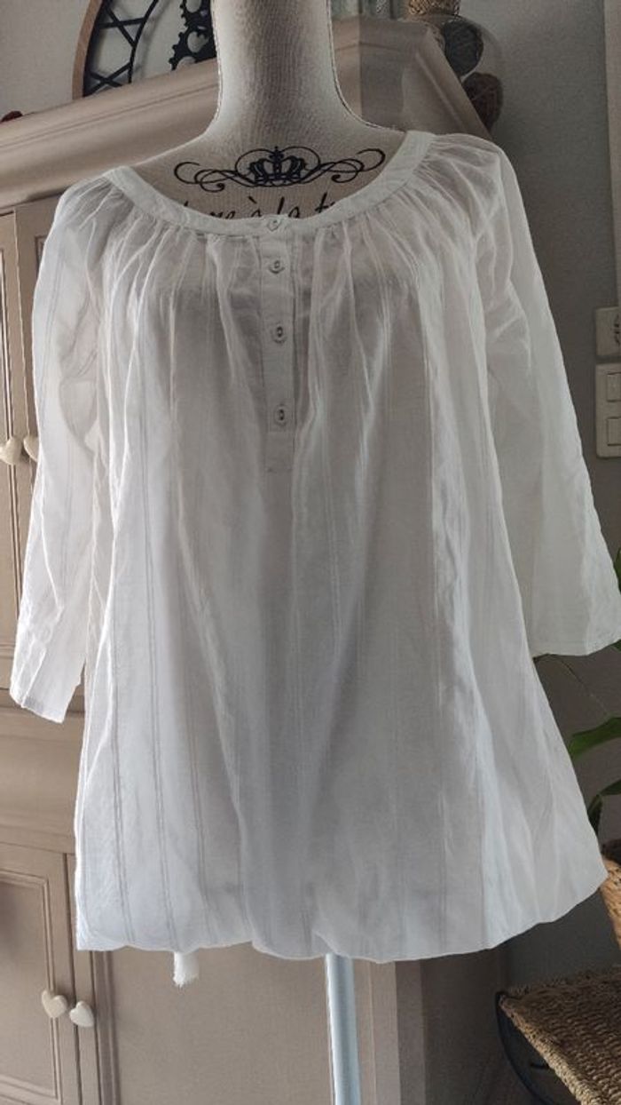 Tunique blanche bouffante Pimkie taille 38 En coton Excellent état Manches 3/4 avec pattes pour relever joli finition