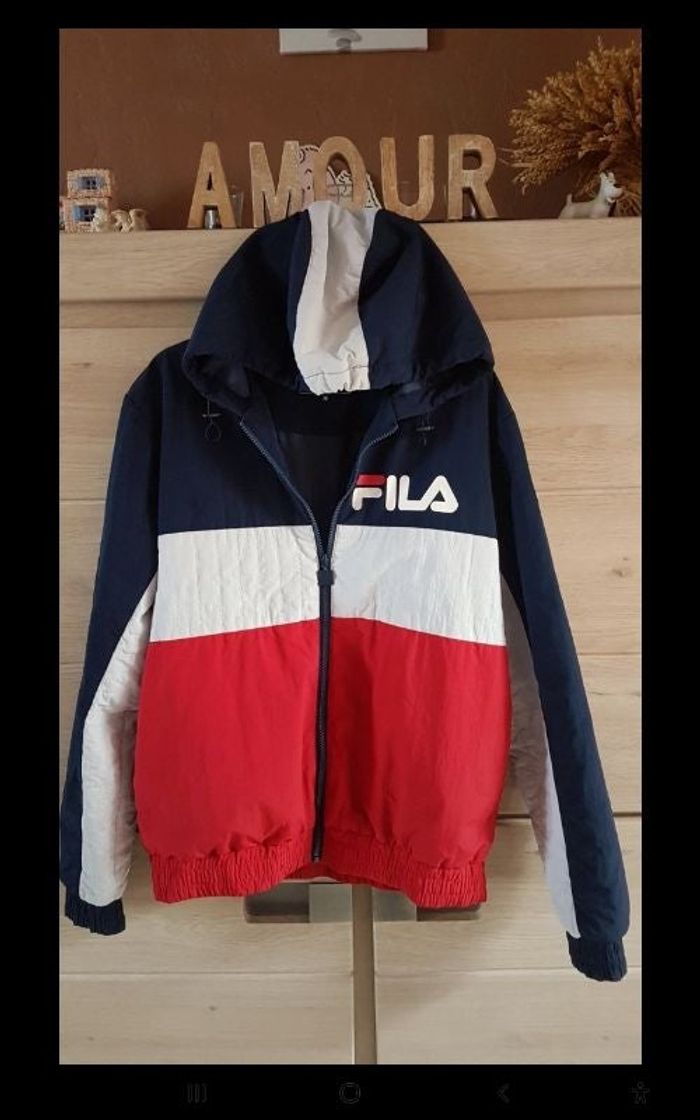 Je vends veste FILA. Taille M. Zippée. 2 poches devant. Doublée. Imperméable. Excellent état