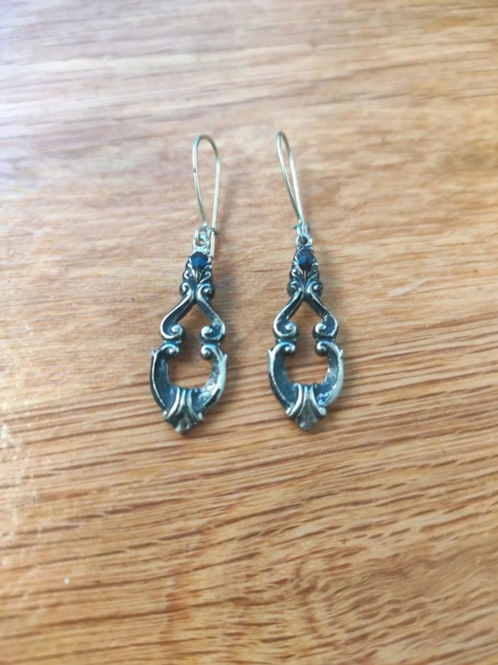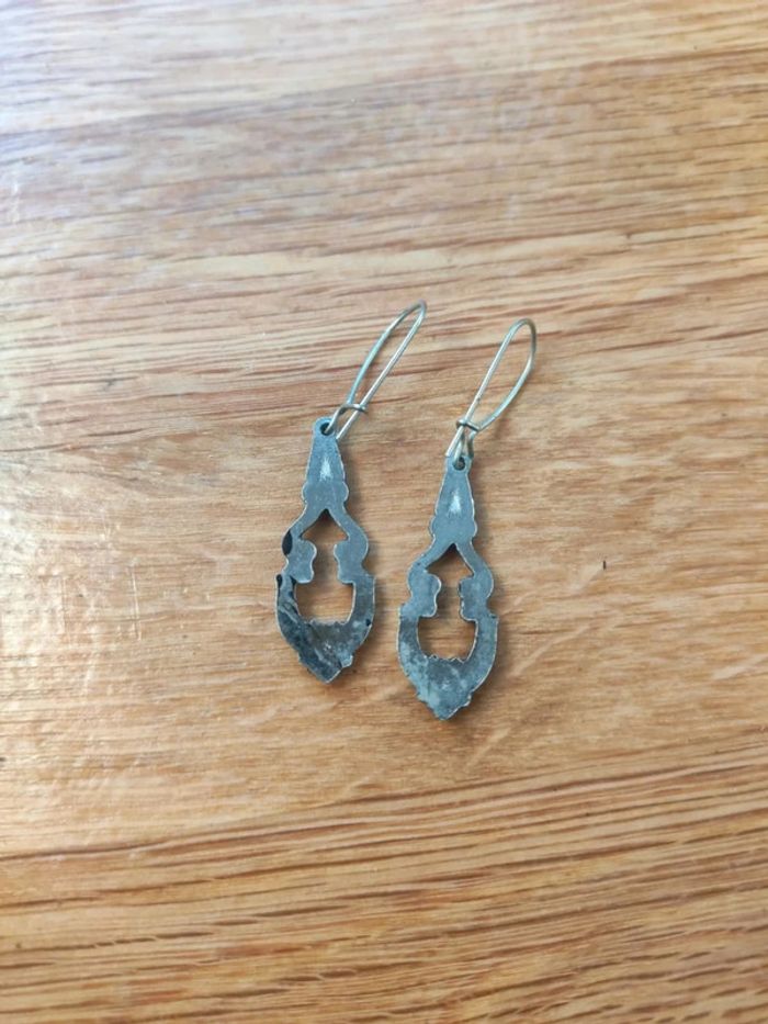 Jolies boucles qui nécessitent un bon nettoyage, portées seulement une ou deux fois. Longueur totale 2,3 cm. Couleur argenté #vulariBijoux
