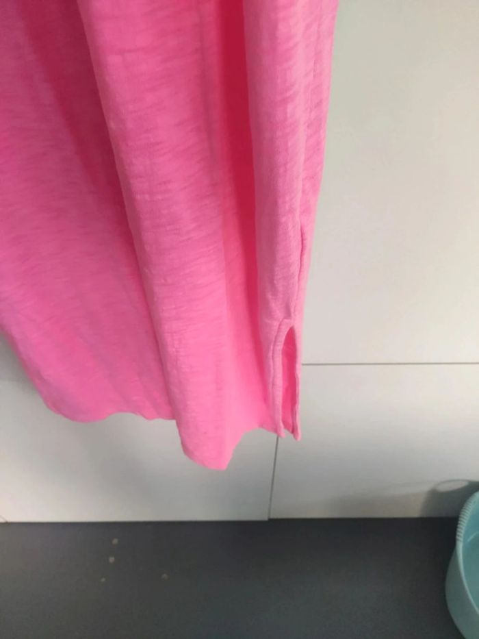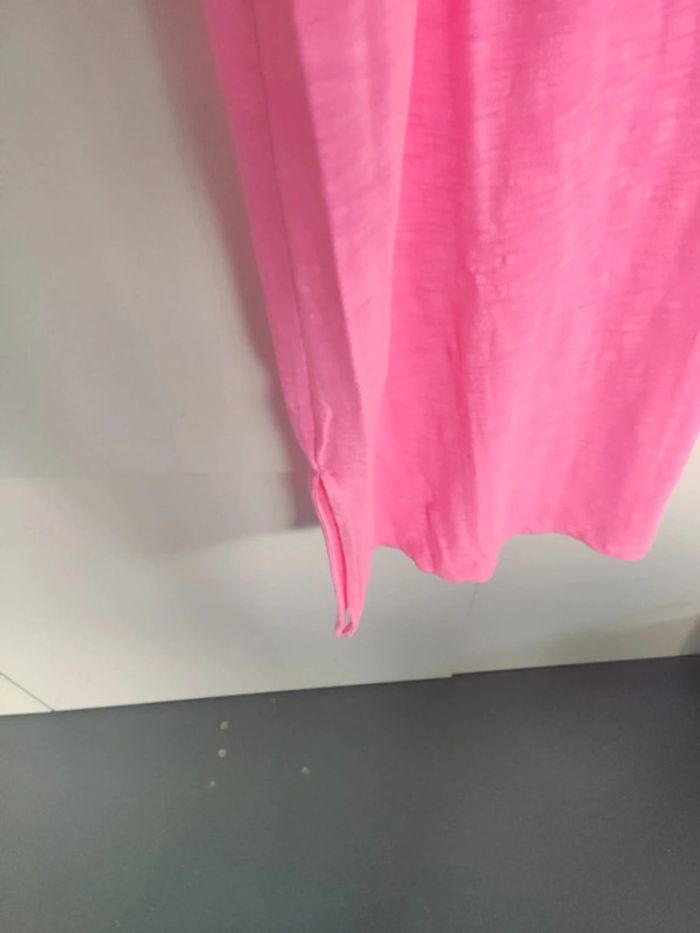 Très longue robe aspect lin mais c'est un mélange de coton et polyester, matière hyper douce et fluide, robe jamais portée, juste lavée fendu sur les côtés, rose fushia très franc, limite fluo. Longueur 135 cm, taille M, achetée dans un magasin Gap #vulariFemmesM38 #vulariGap
