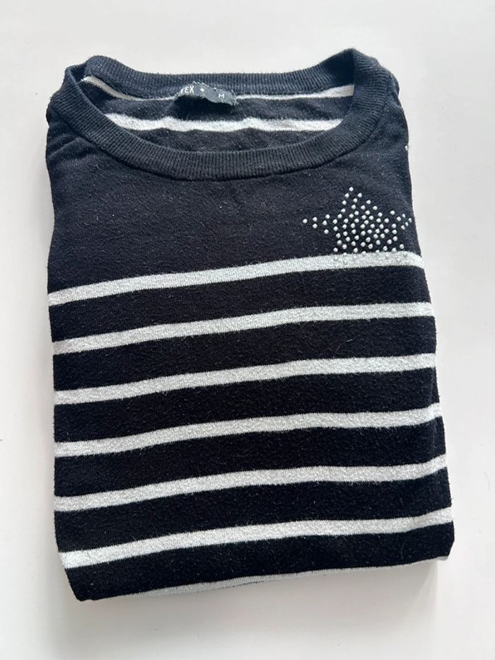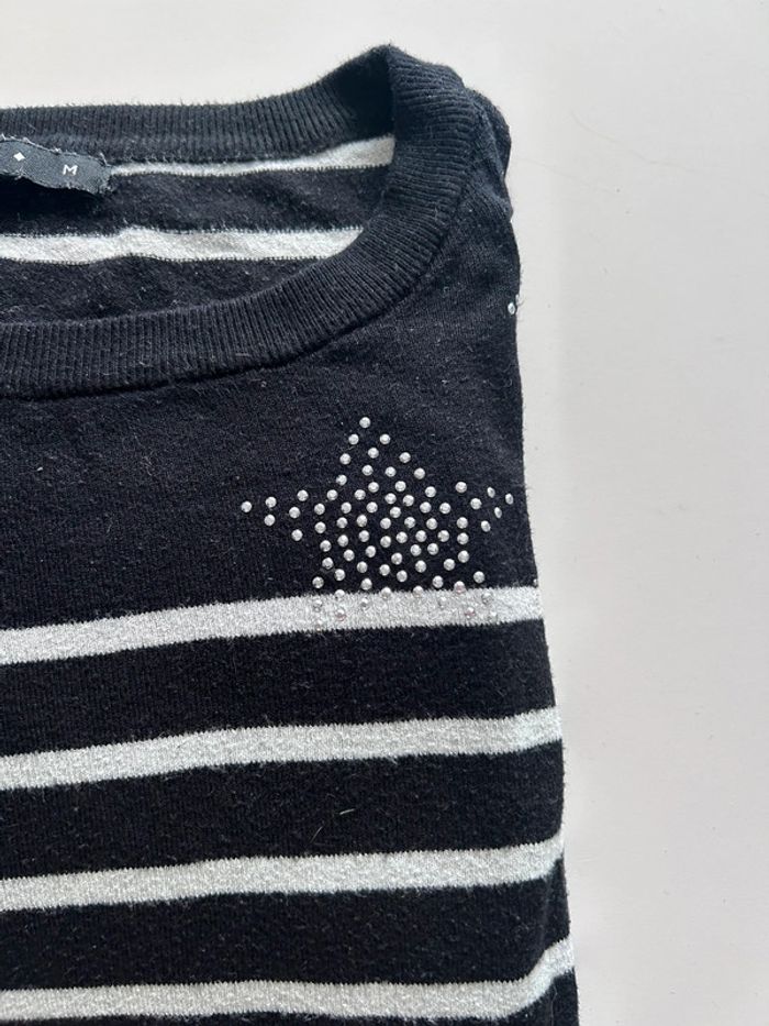 Pull TEX – Taille M – Rayures & Détails Chics - Chemise, Étoiles en strass - photo numéro 1