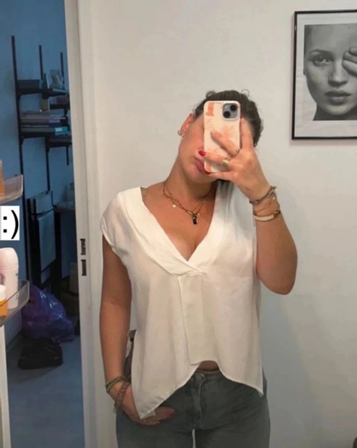 ✨ Top Zara – Taille M Je vends ce top Zara blanc, à la coupe fluide et élégante. Son col en V et sa matière légère en font une pièce idéale pour toutes les saisons ! ✨ Détails : ✔️ Taille M ✔️ Coupe fluide et confortable ✔️ Col en V pour une touche féminine ✔️ Facile à assortir 💰 Prix négociable 📩 Contactez-moi pour plus d’infos ! #Zara #SecondeMain #ModeTendance #LookÉlégant #BonPlan #Vinted