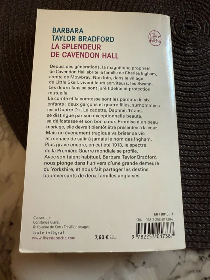 La splendeur de Cavendon Hall de Barbara Taylor Bradford Très bon état Envoi rapide et soigné #livresceres981