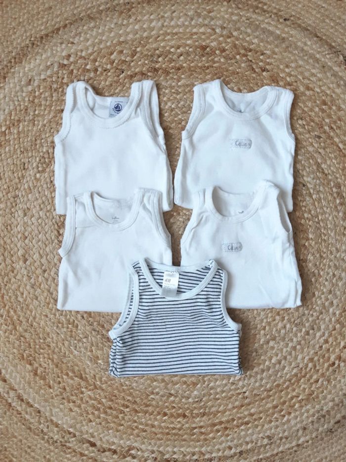 5 bodies été débardeur mixte Petit Bateau, Influx et H&M Blanc uni, côtelé rayé noir et blanc #anthonyagnes_bebe3M