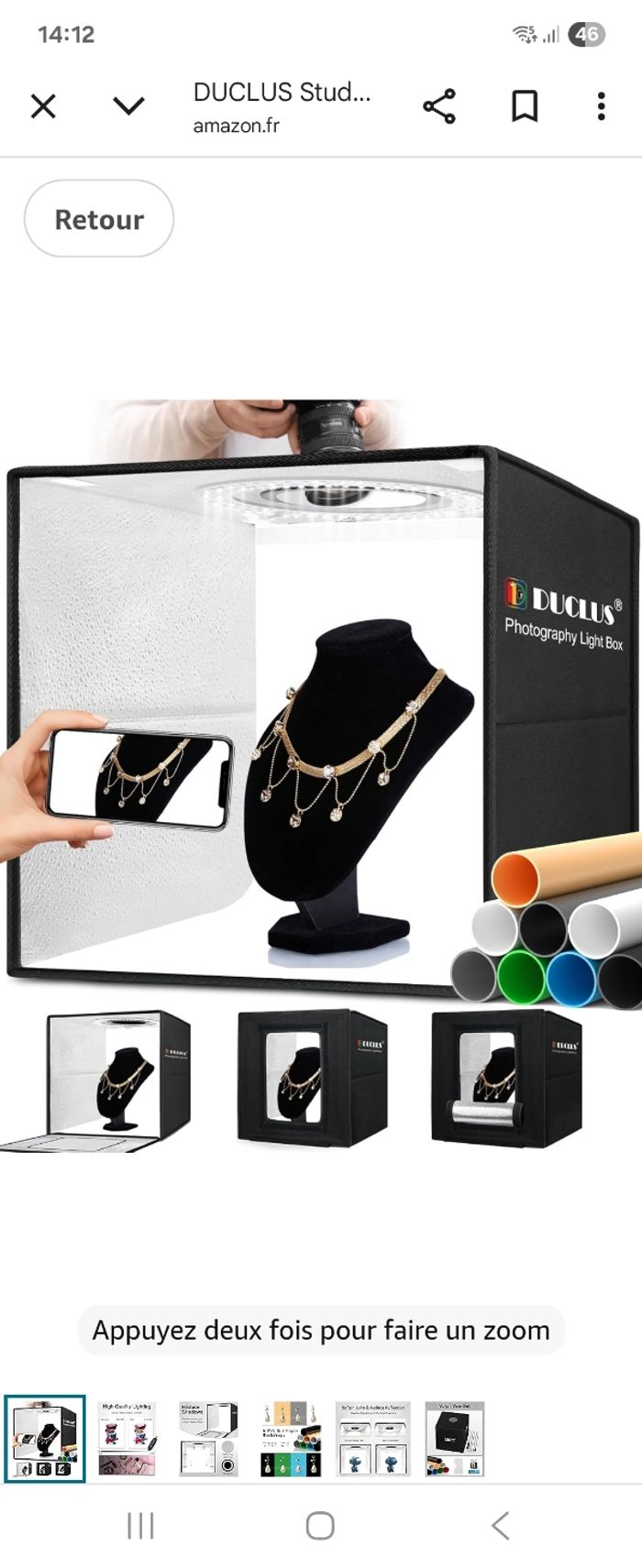 Studio photo avec led Plusieurs intensité de lumière Tres bon état Utilisé 2 fois Plusieurs couleurs de fond 40×40 cm Pliable et transportable Acheté 65€