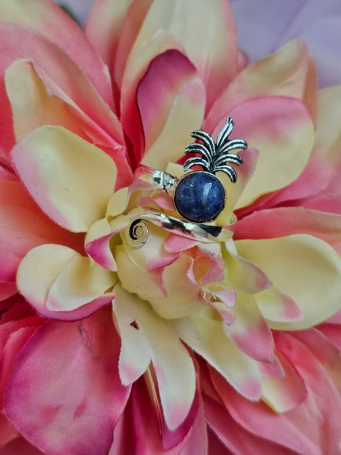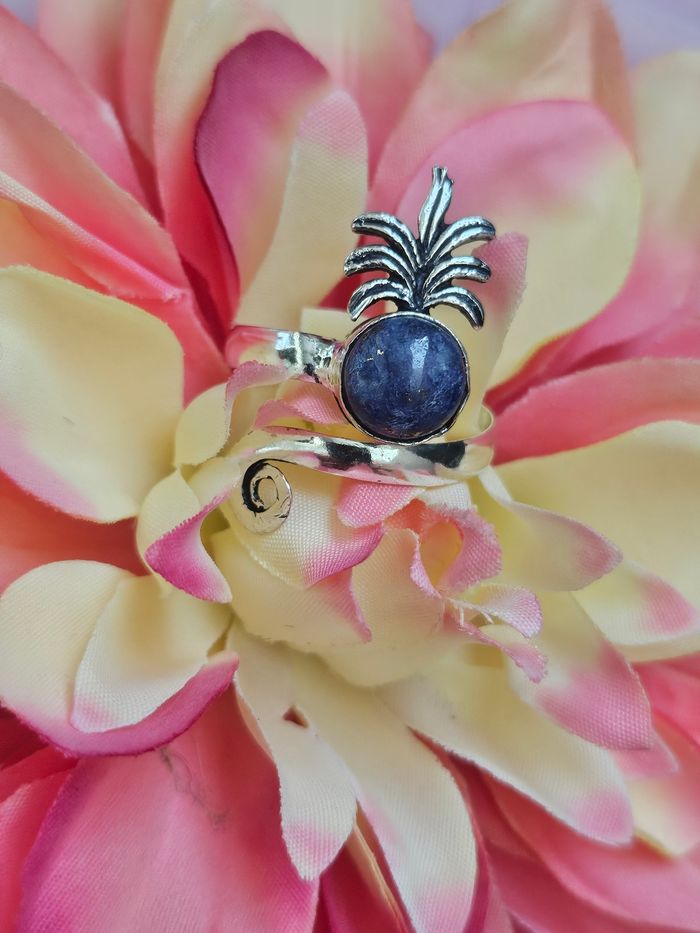 Bague ajustable en argent sterling 925 avec pierre lapis lazuli - photo numéro 1
