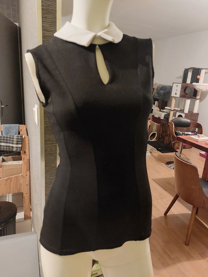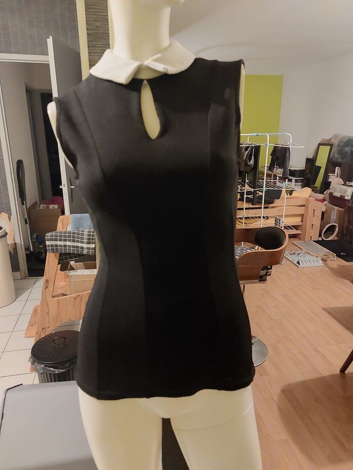 Débardeur Morgan noir avec col Claudine blanc en excellent état, taille XS Envoi rapide et soigné N'hésitez pas à me contacter si vous avez des questions 😀