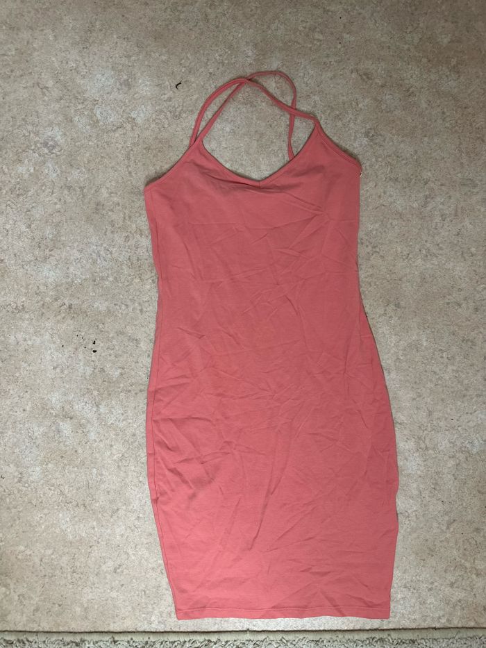 Robe d été dos croisé saumon / corail rose Taille s