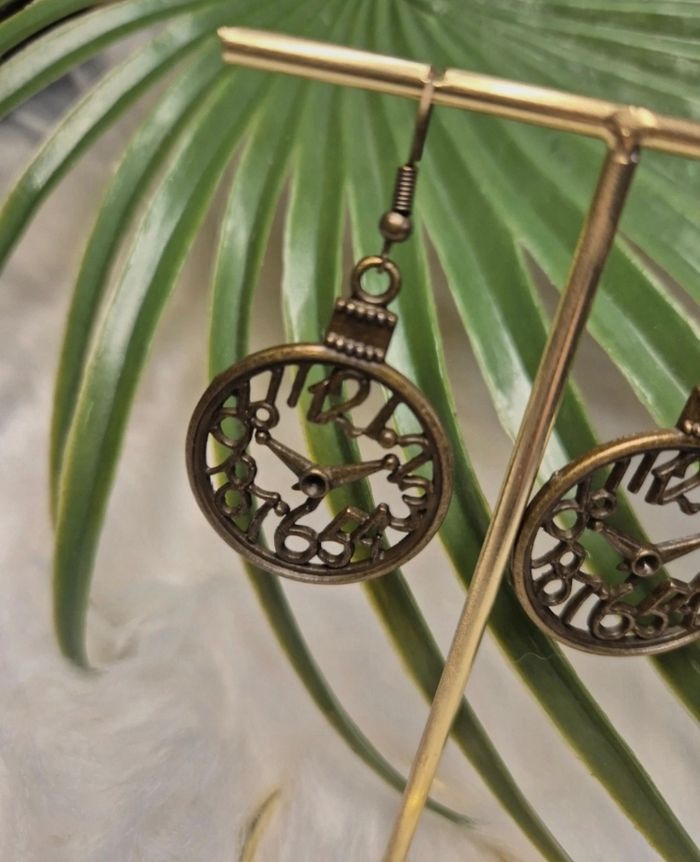 Boucles d’oreilles horloge en métal bronze