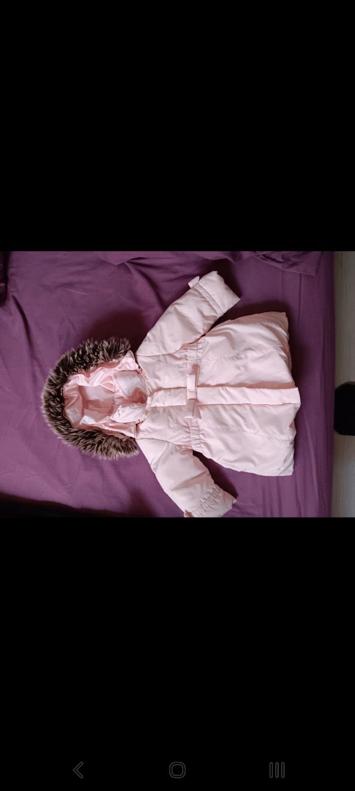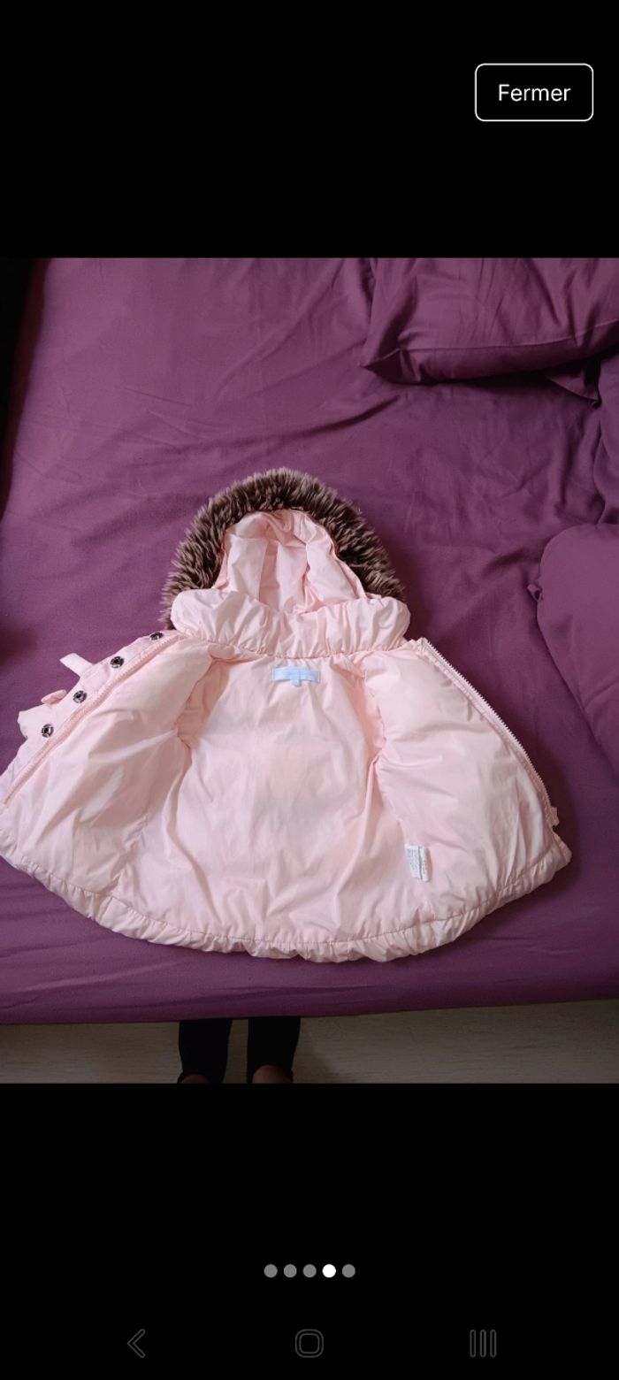 Manteau rose fermeture éclair plus pression. Nœud en décoration. Âge 6 mois