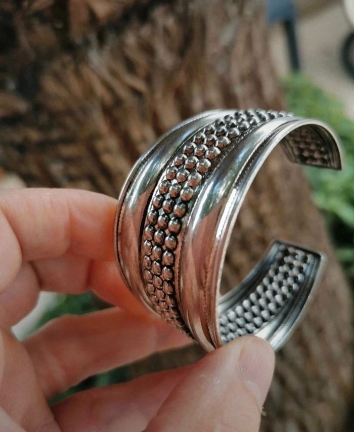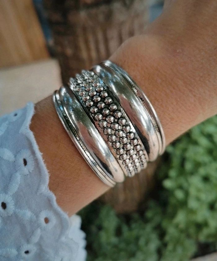 A47 bracelet jonc manchette bohème chromé argenté tendance réglable - photo numéro 4