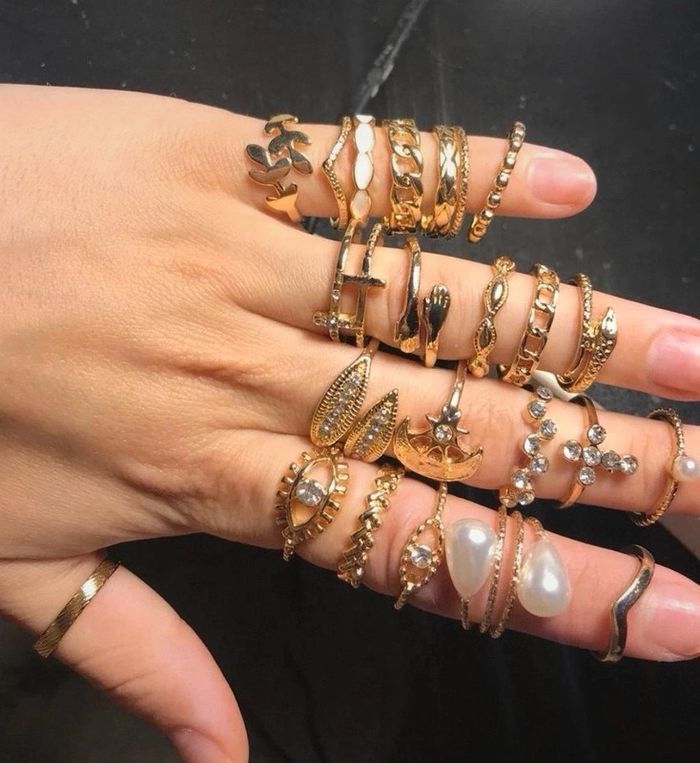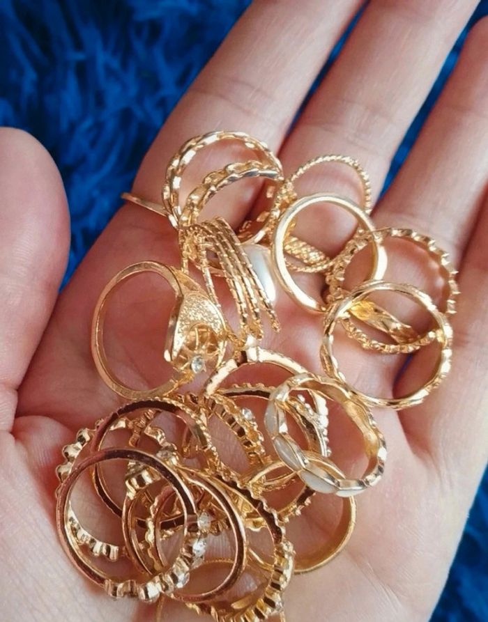 Lot de 22 bagues fantaisie doré or tendance diverses taille.neuves. Jamais porté #bijou #bijouxfantaisie #bijouxfemme #retrofashion #fashion #style #accessoriesfemme #accessoires #jollas #jewels #jewerly #anillo #boho #boheme #bohemechic #bohostyle #bijouxfantaisie #designer #fashion #set #setbijoux #jewerlyset #lotbijoux #mode#modefemme