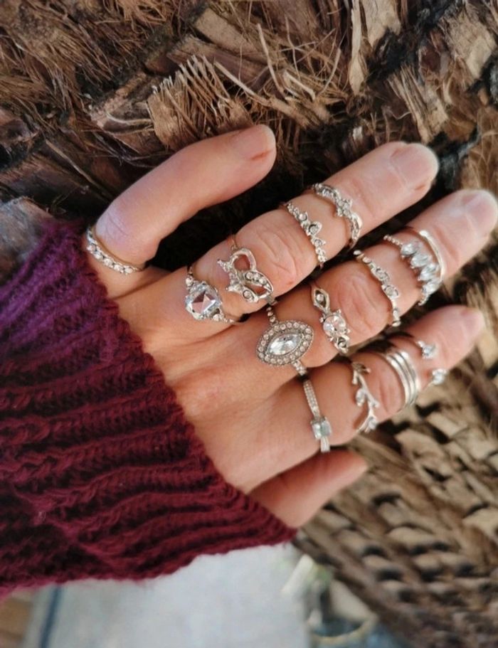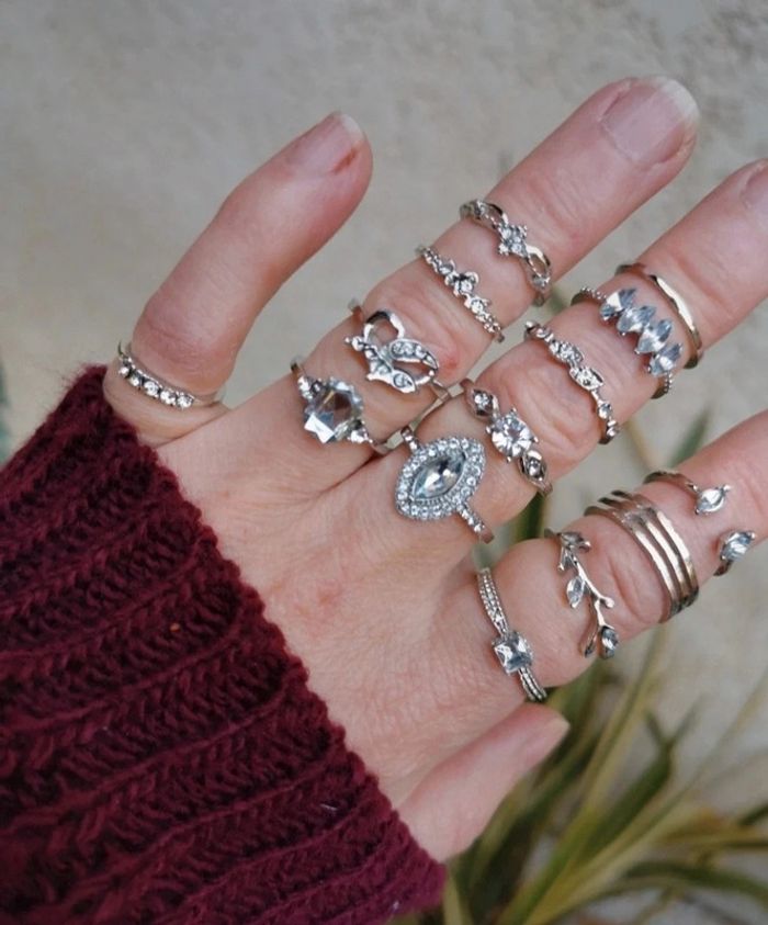Lot de 14 bagues bohème chromé argenté tendance diverses taille.neuves. Jamais porté #bijou #bijouxfantaisie #bijouxfemme #retrofashion #fashion #style #accessoriesfemme #accessoires #jollas #jewels #jewerly #anillo #boho #boheme #bohemechic #bohostyle #bijouxfantaisie #bijouxfemme