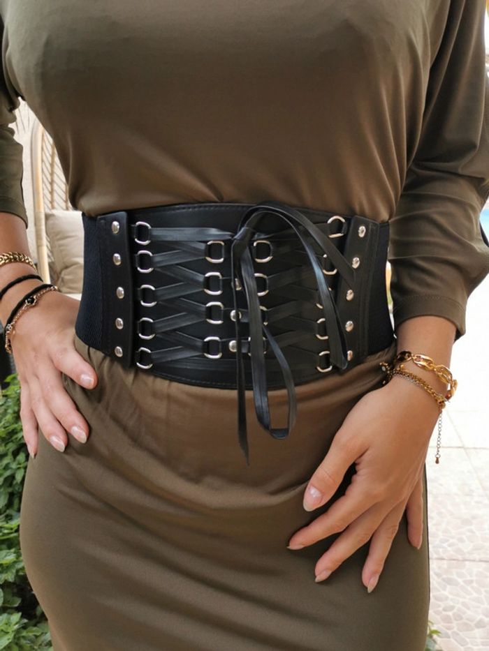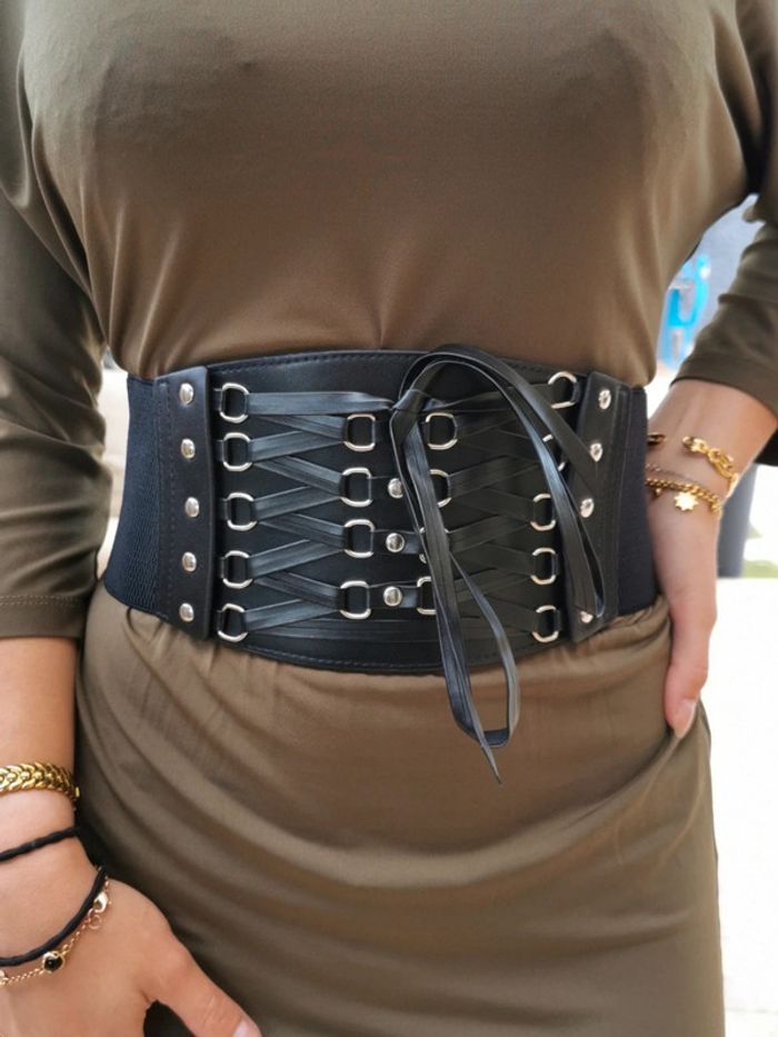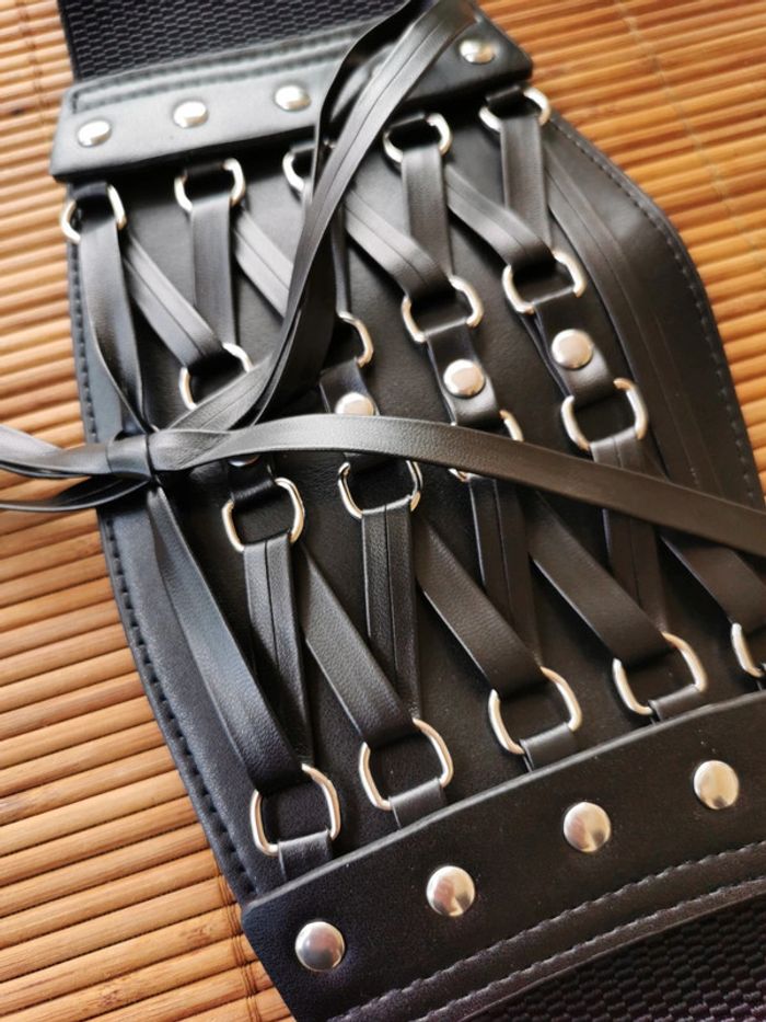 A46 ceinture gaine corset vintage rétro ajustable noire.