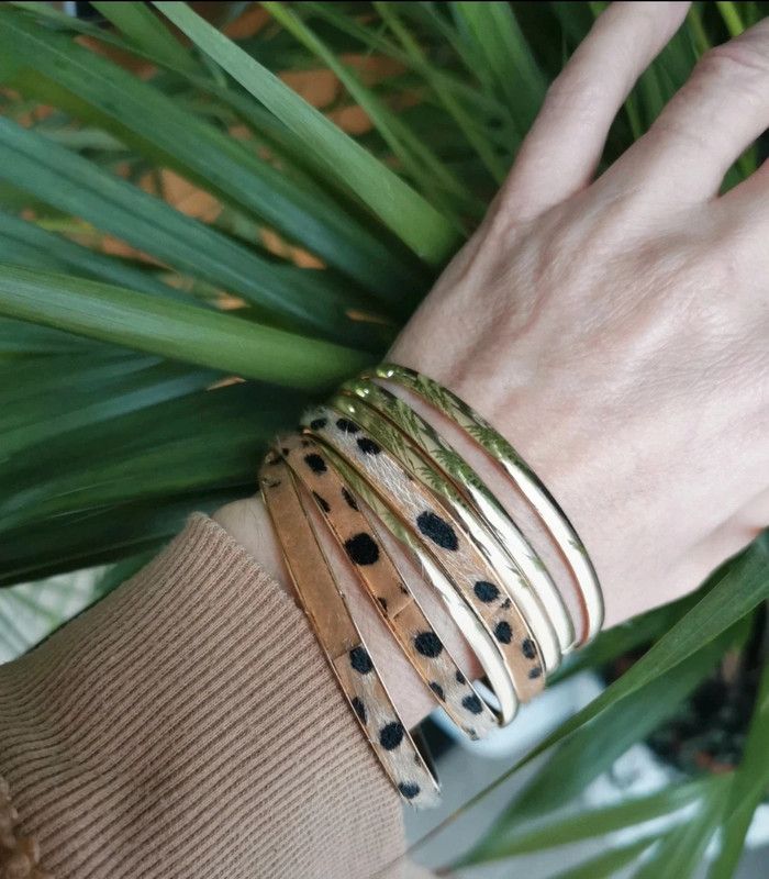 Lot de 7 bracelets jonc doré or tendance. Jamais porté #bijou #bijouxfantaisie #bijouxfemme #retrofashion #fashion #style #accessoriesfemme #accessoires #jollas #jewels #jewerly #style #accessoriesfemme #accessories#jonc #leopard #set #setbijoux #jewerlyset#lotbijoux