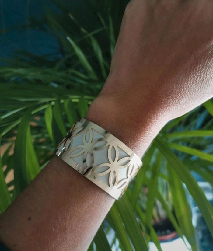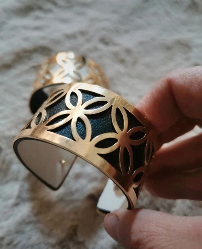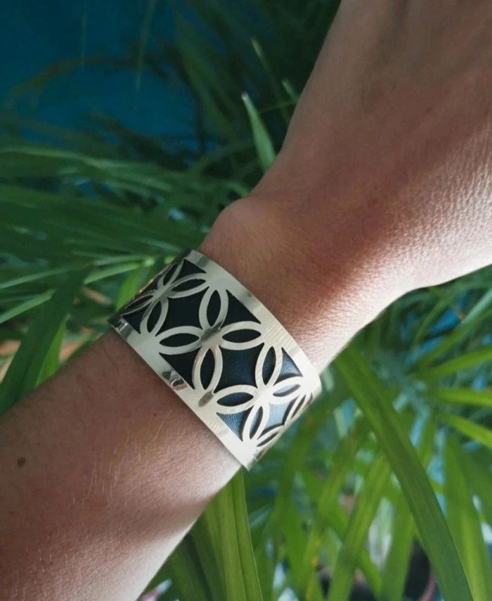 Bracelet jonc cuir et acier inoxydable tendance ajustable. Jamais porté #bijou #bijouxfantaisie #bijouxfemme #retrofashion #fashion #style #accessoriesfemme #accessoires #jollas #jewels #jewerly #style #accessoriesfemme #accessories#jonc #georgette #acierinoxydable #stainless