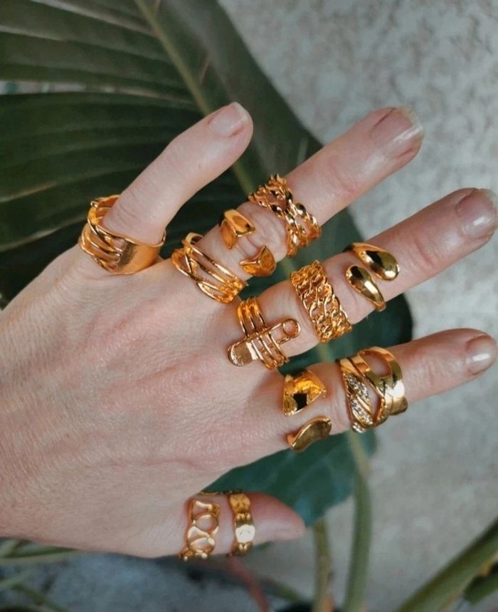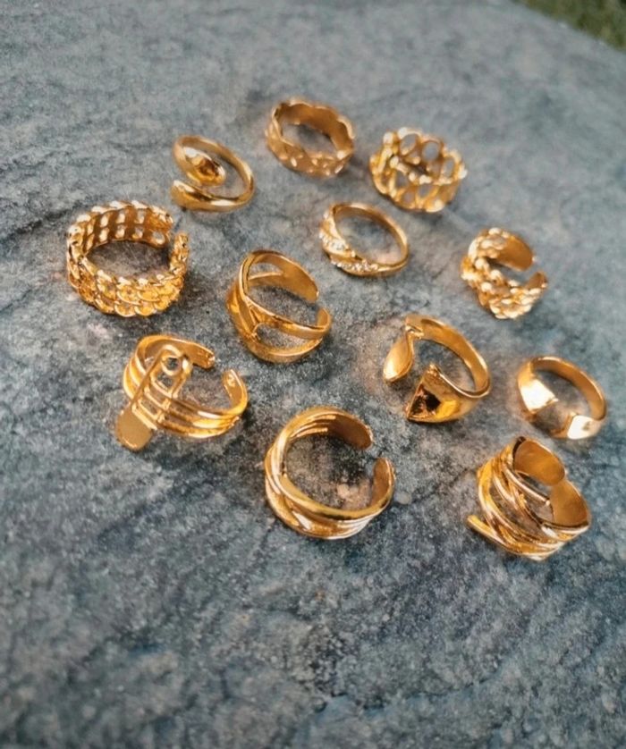 Lot de 12 bagues dorées or tendance diverses taille.neuves. Jamais porté #bijou #bijouxfantaisie #bijouxfemme #retrofashion #fashion #fantaisie #boho #boheme #bohemechic #jewels #jewerly #style#accessoriesfemme #accessoires#jollas #jewerlyset#lotbijoux #boheme #accessories #lotbague #bijoutendance #anillos#anillo