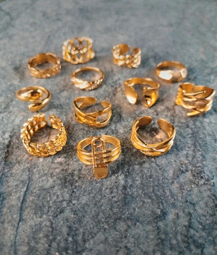 A36 lot de 12 bagues dorées or tendance diverses taille neuve - photo numéro 1