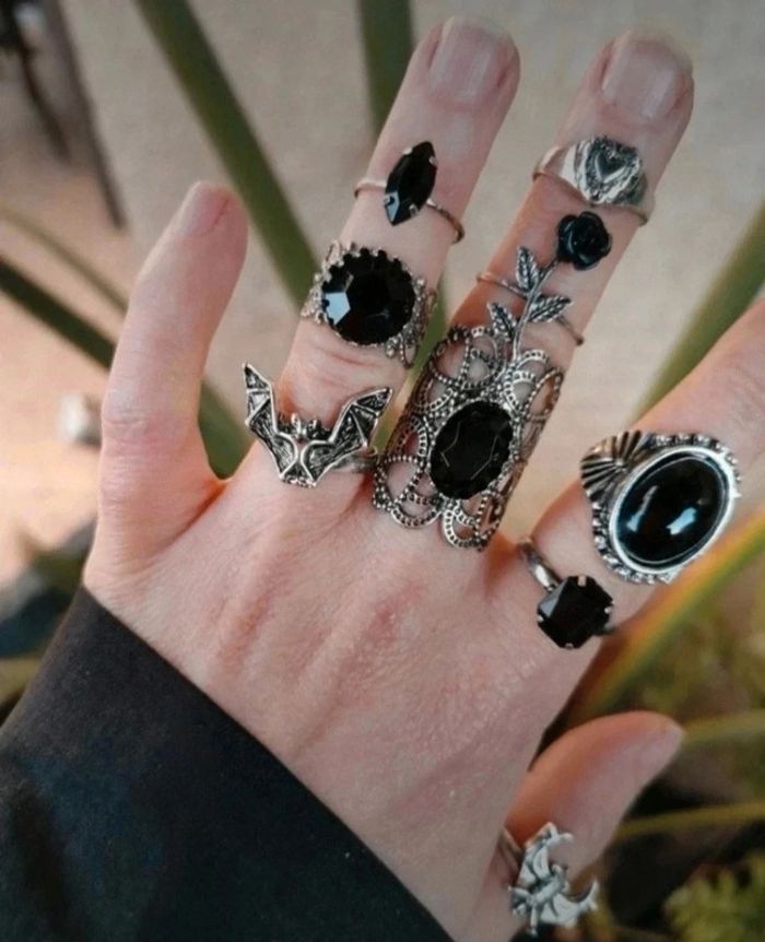 Lot de 9 bagues bohème rétro chromé ajustables. Jamais porté #bijou #bijouxfantaisie #bijouxfemme #retrofashion #fashion #style #accessoriesfemme #accessoires #jollas #jewelleryset #lot#lotbijou#accessories #accessories #bijouvintage #fashion#jewels #set #setbijoux #jewerlyset#lotbijoux #gothicstyle