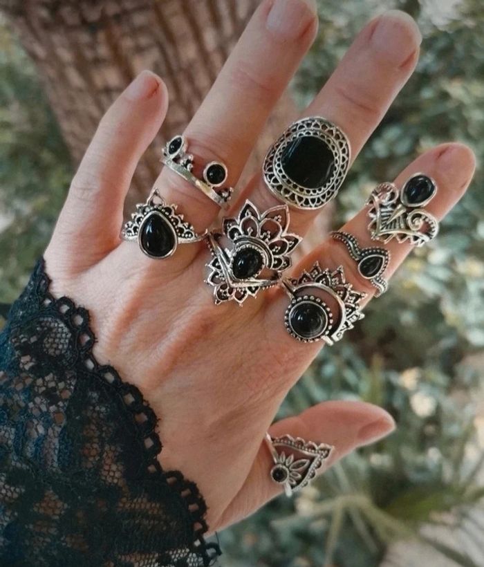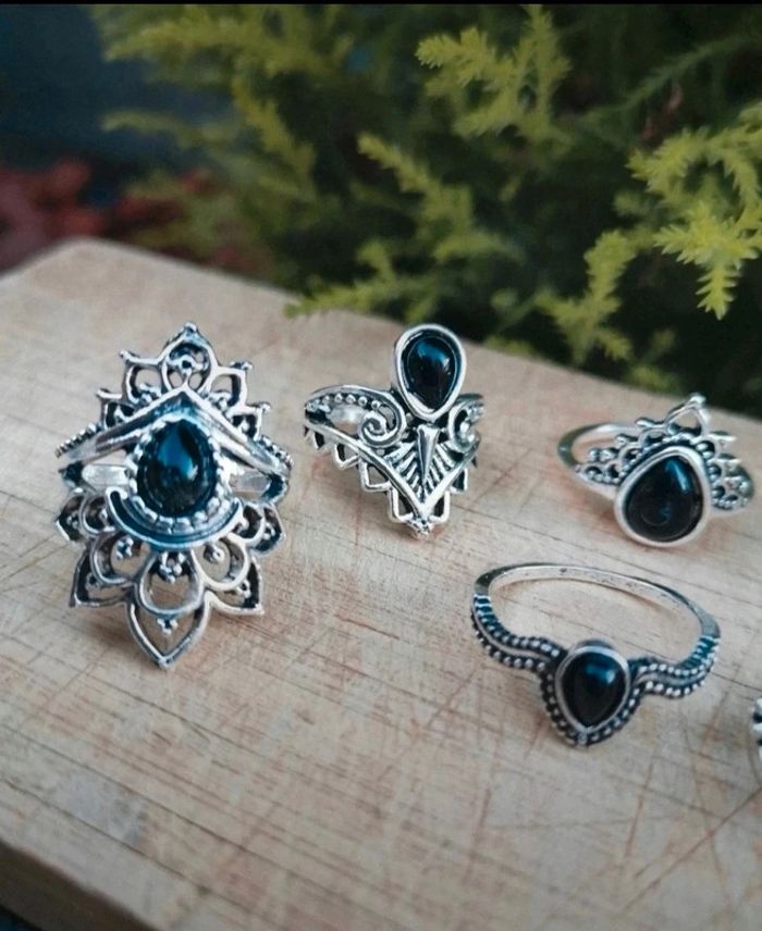 Lot de 8 bagues bohème rétro diverses taille neuve. Jamais porté #bijou #bijouxfantaisie #bijouxfemme #retrofashion #fashion #style #accessoriesfemme #accessoires #jollas #jewels #jewerly #anillo #boho #boheme #gothic #gothicstyle #set #setbijoux #jewerlyset#lotbijoux