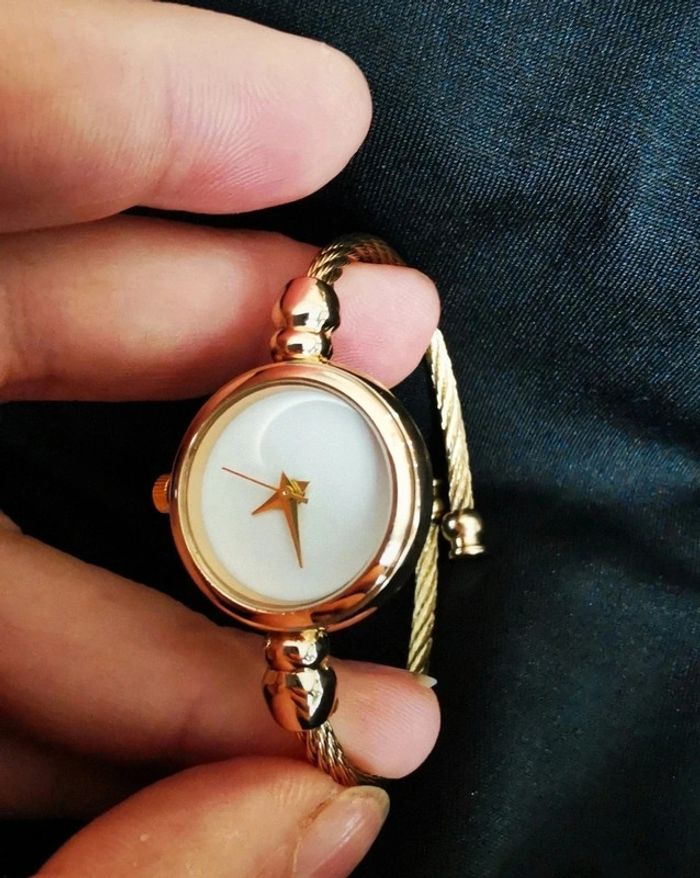 Montre bijou bracelet doré or tendance réglable acier inoxydable. Jamais porté. #bracelet #bijou #bijouxfantaisie #bijouxfemme #retrofashion #fashion #fantaisie #boho #boheme #jonc #cadeau #accessories #accessoirefemme #montre #watch #quartz #watches #montredoree