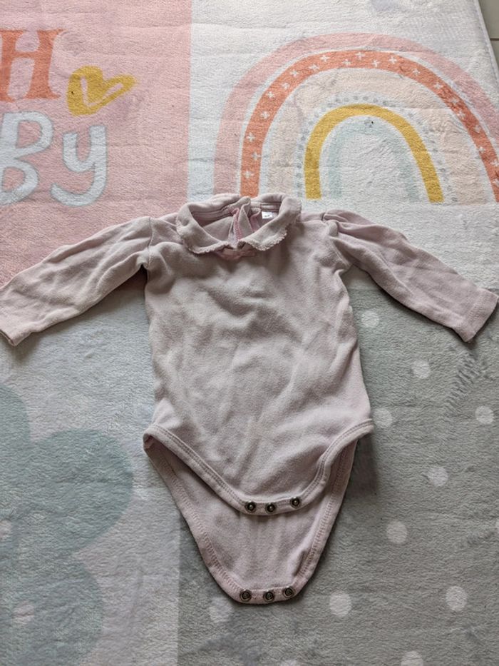 Taille 9 mois et le rose taille 68 Bouloches visible, légère tâche sur le vert ( voir photo)