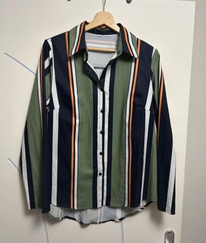 Chemise manches longues Taille 42 Longueur sous aisselles 50 cm Longueur totale 64 cm devant et 67 cm à l’arrière