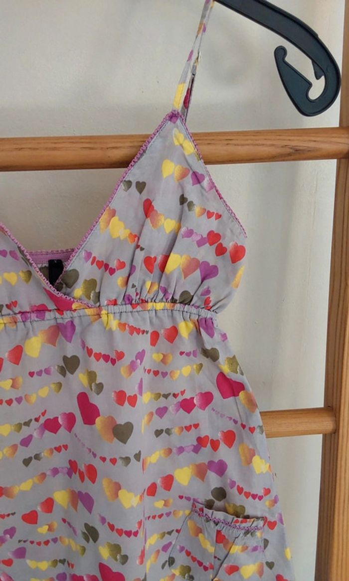 Top débardeur tunique Undiz T 34 Petits cœurs multicolores sur fond beige. Bretelles fines ajustables. Longueur environ 75 cm Élastique au niveau des aisselles. Pour la suite de mes vêtements en 34... #legrenierdeprovence34 #undiz34 #coeur #undiz #top #tunique
