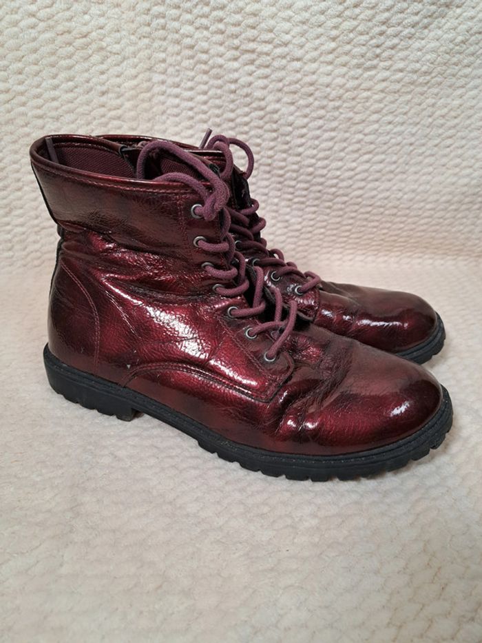 Bottines rouge bordeaux en cuir synthétique - Tissaia - Taille 40 👢 - photo numéro 5
