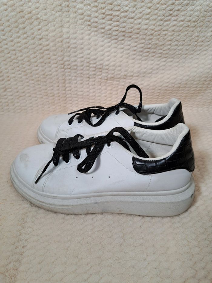 Baskets blanches à lacets noirs - Taille 39 👟 - photo numéro 5