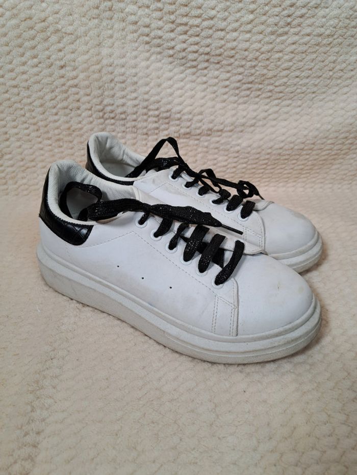 Baskets blanches à lacets noirs - Taille 39 👟 - photo numéro 1