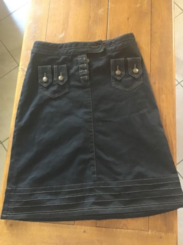 Jupe droite noire avec liseré beige Boutonnage 5 boutons Poches fantaisies