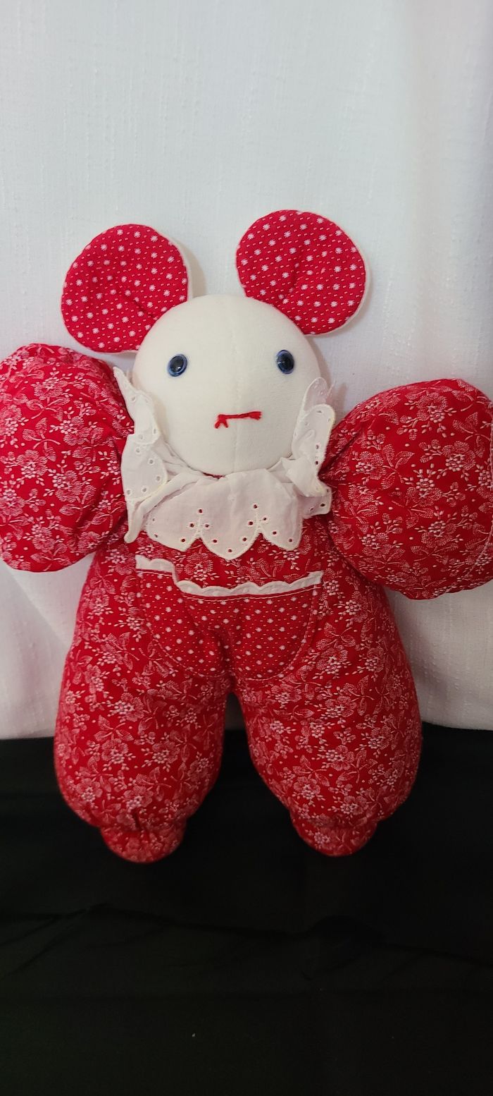doudou souris tissus rouge motifs fleurs moulin roty vintage - photo numéro 1