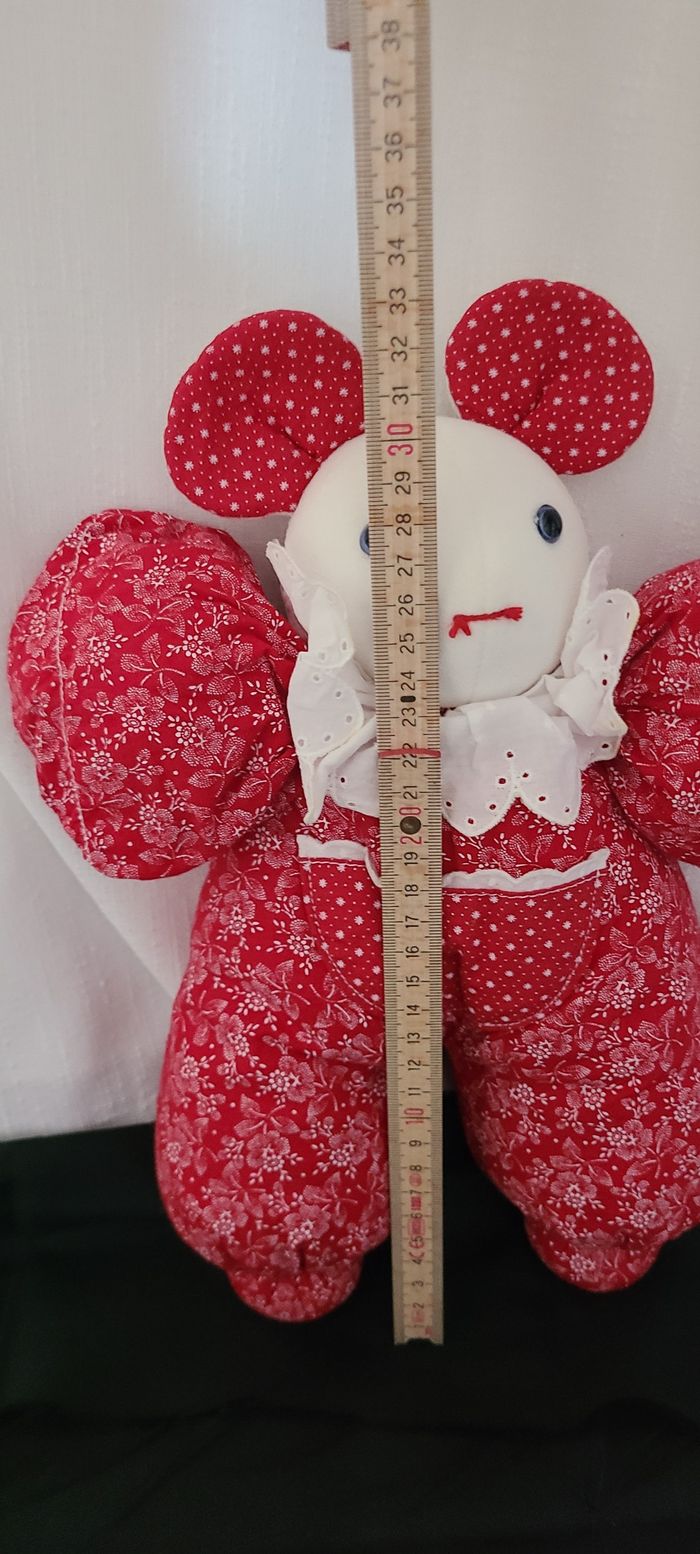 doudou souris tissus rouge motifs fleurs moulin roty vintage - photo numéro 4