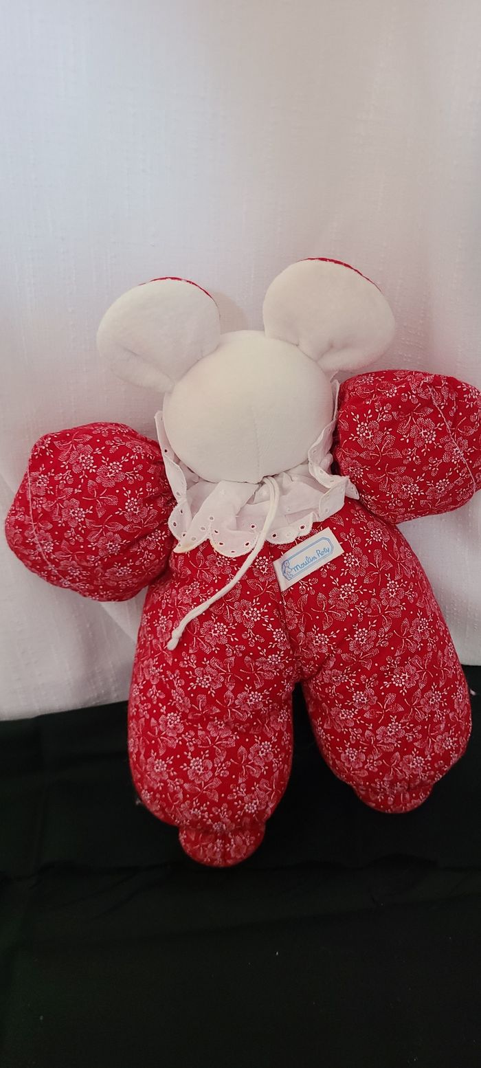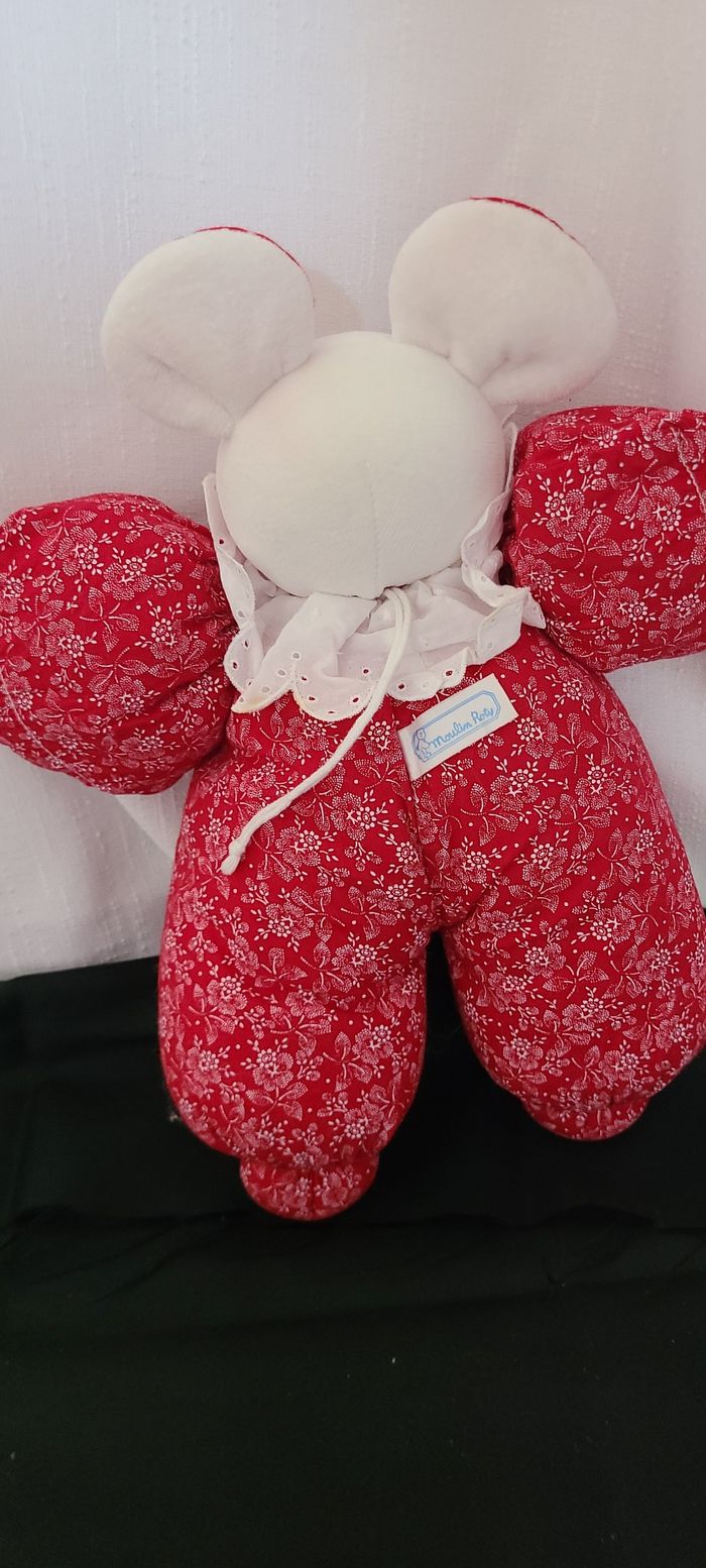 doudou souris tissus rouge motifs fleurs moulin roty vintage - photo numéro 3