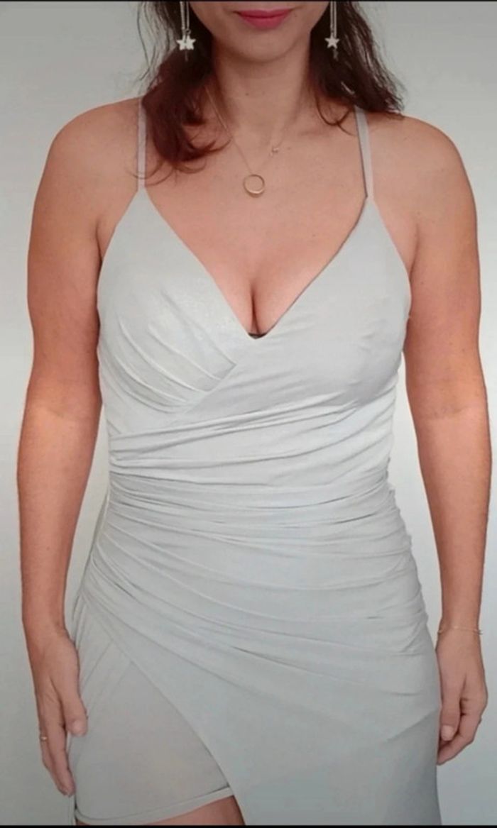 Robe cocktail maxi argentée asymétrique taille 38 - photo numéro 2