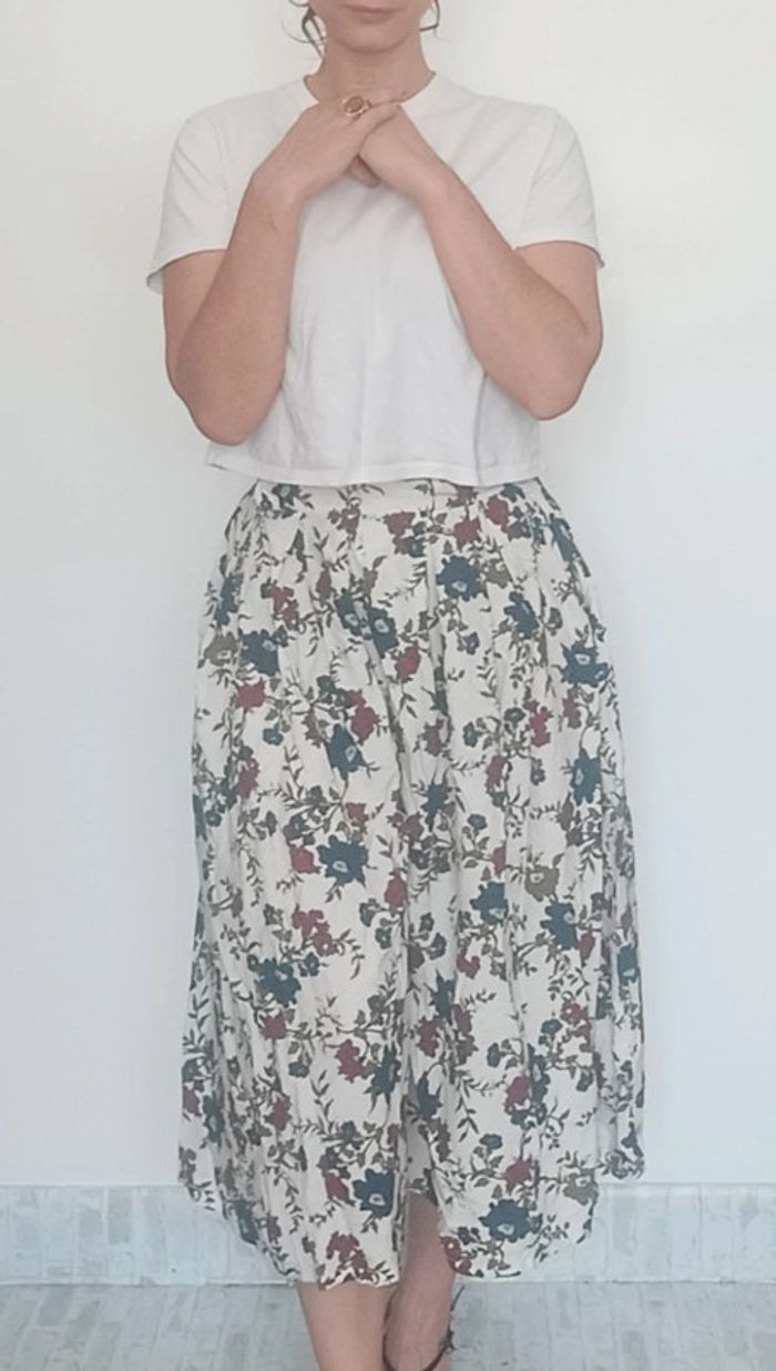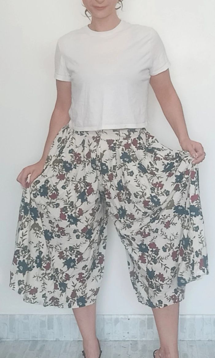 Jupe culotte longue ample fleurie vintage t 36/38 - photo numéro 1