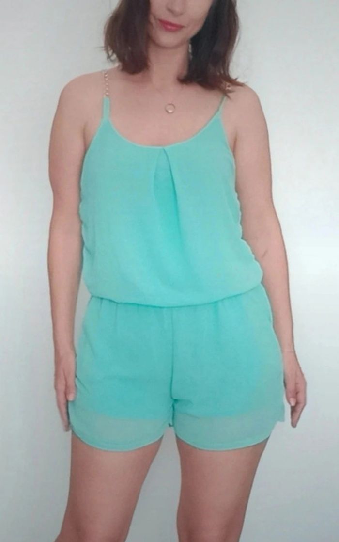 Regardez mes autres articles dans votre taille pour grouper les fdp #poupoupidoutu Combishort fluide, bretelles fine chaîne dorée, élastiquée à la taille, doublée voile, unie couleur menthe, casual chic idéale été #combishort #combishortfluide #combishortmenthe #combishortete #combishortturquoise #combi