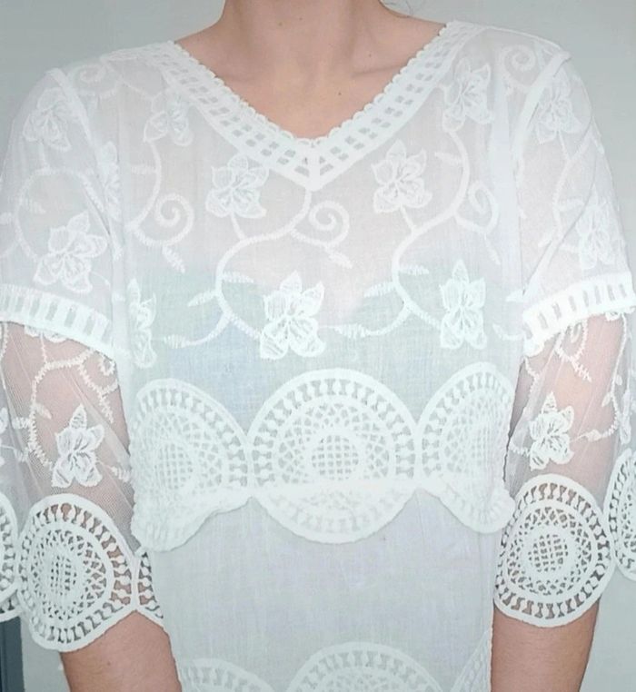 Haut chic voile et crochet blanc taille unique - photo numéro 1