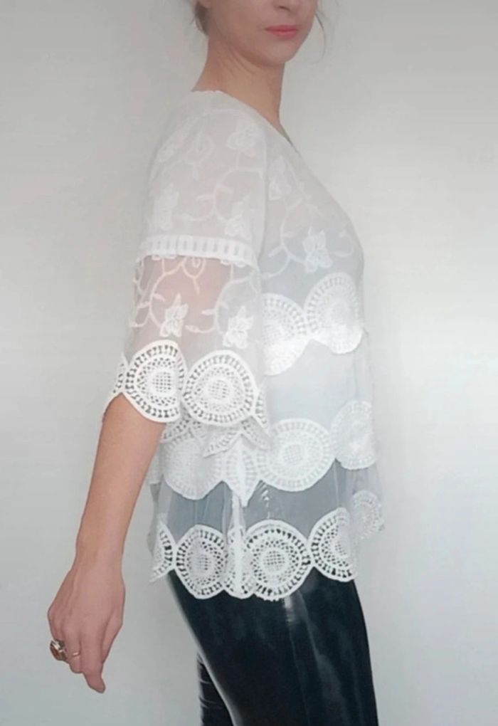 Haut chic voile et crochet blanc taille unique - photo numéro 6