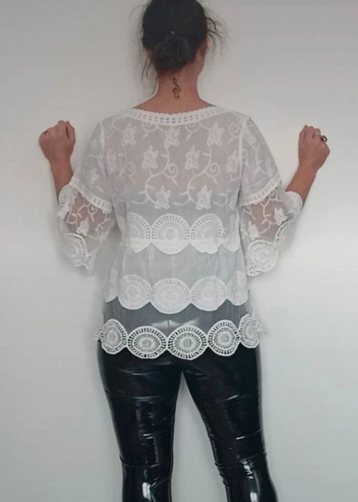 Haut chic voile et crochet blanc taille unique - photo numéro 3
