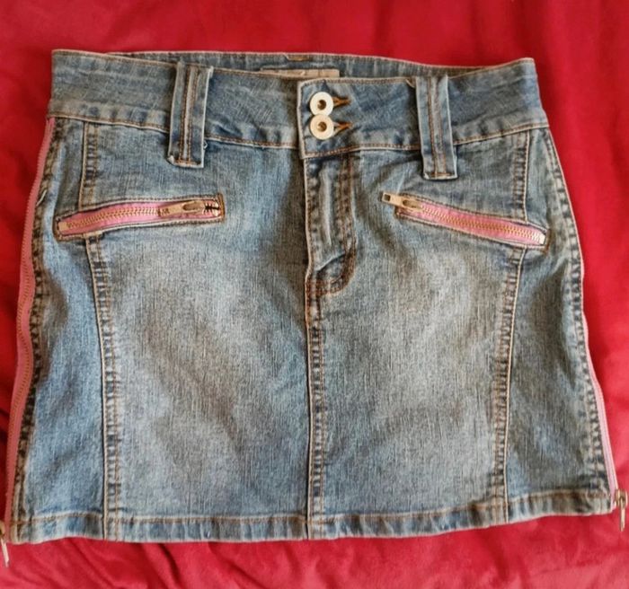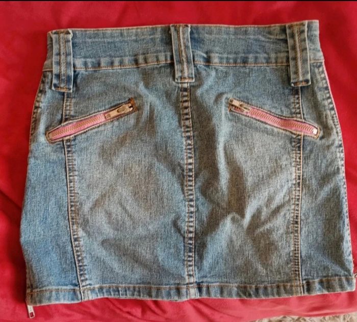 Minijupe en jeans avec fermetures éclairs et touches de roses, style girly, basique pour femme 34 ou ado #minijupe34 #minijupeado #minijupejean34 #minijupejeans34 #jupejeans34 #jupejean34 #jupejeanado