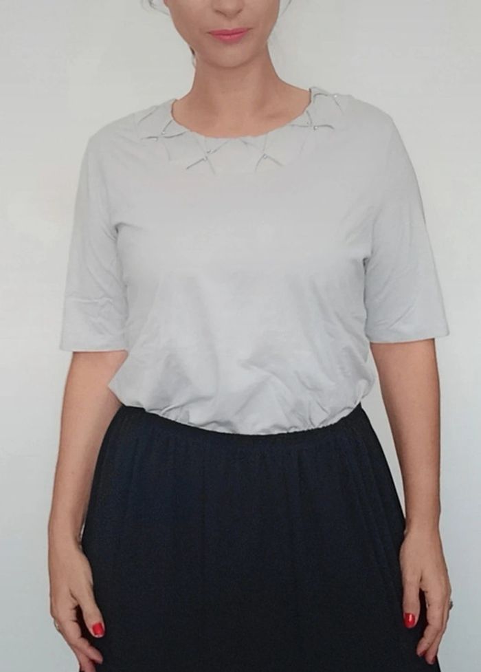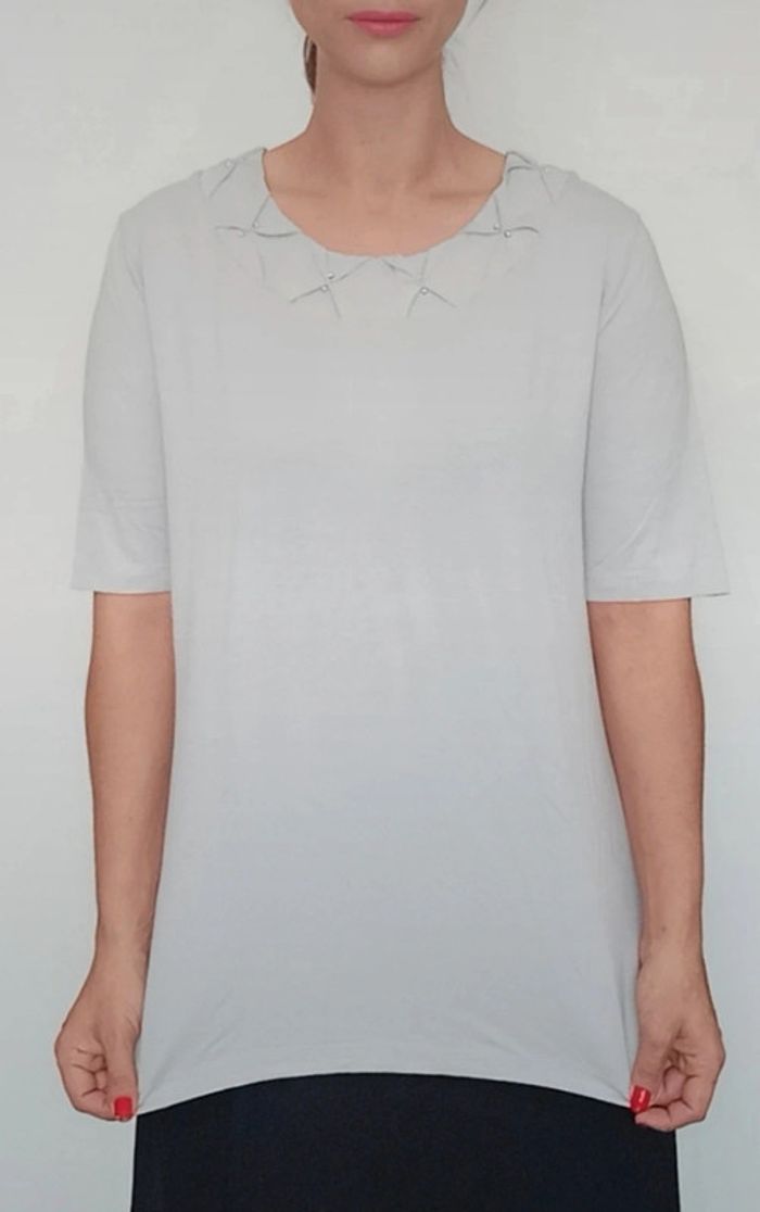 T-shirt gris casual chic col perlé taille 46 - photo numéro 2